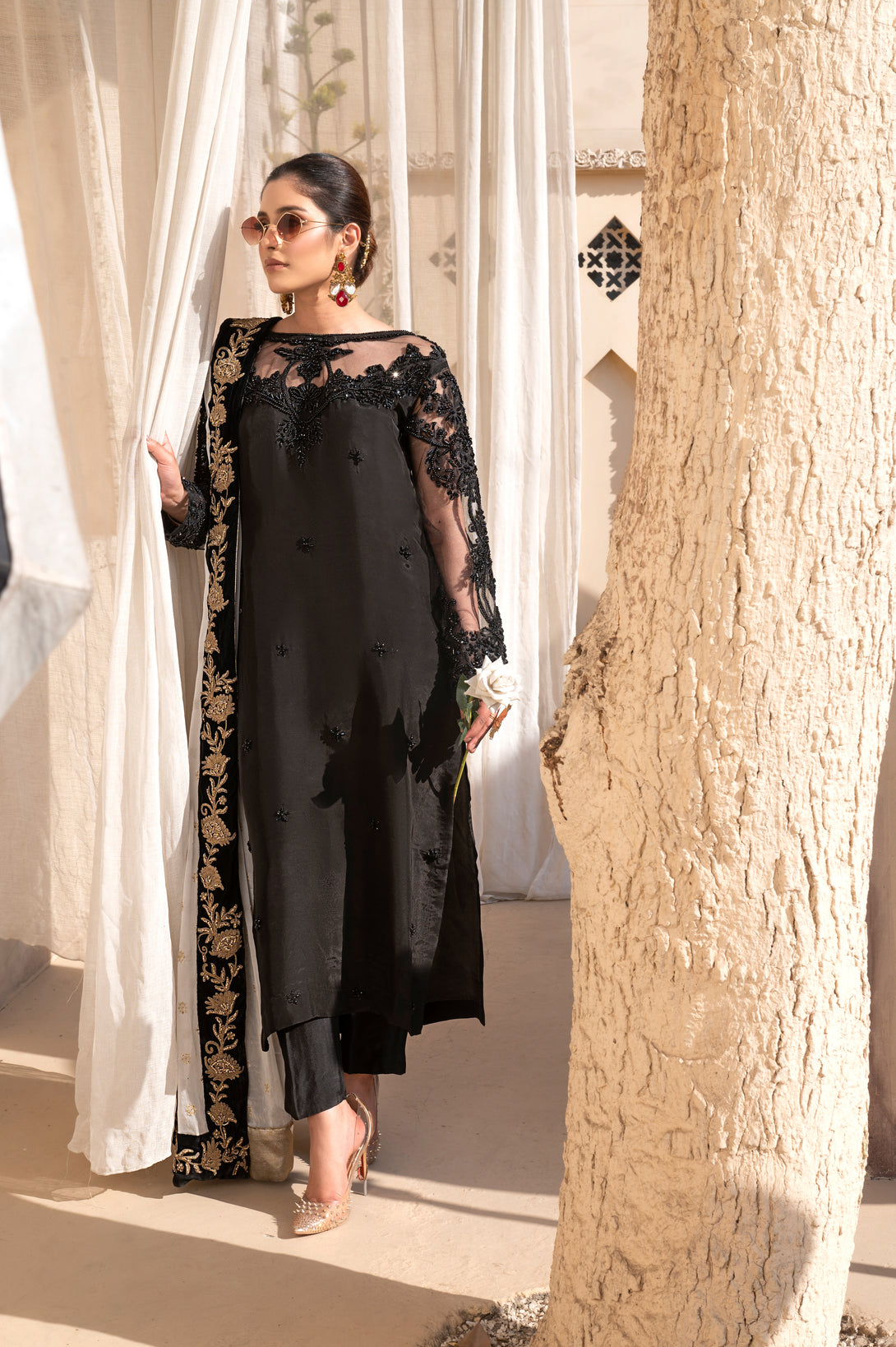 An ode to refined elegance, Inayat is crafted from luxurious silk and elevated with intricate detailing. The shirt is adorned with handwork of cut dana on lace across the shoulders and neckline, while the lace sleeves are further enhanced with delicate hand embellishments, adding subtle sparkle and artistry.